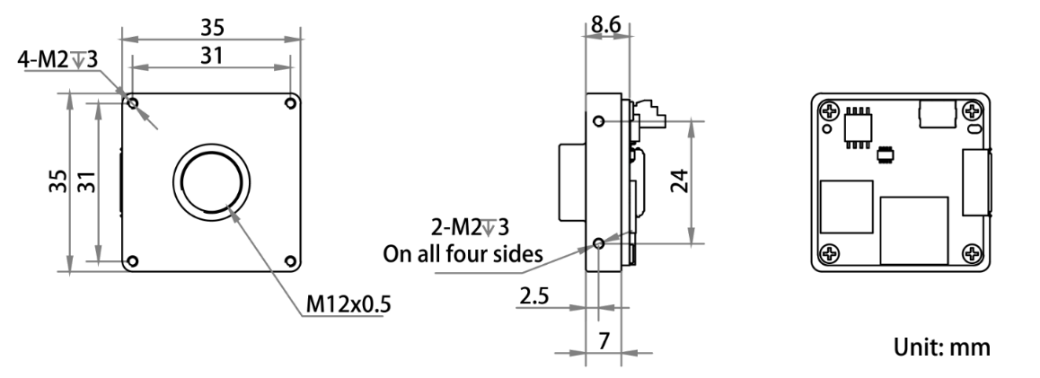 12MP 1/1.7" IMX226 USB3.0 Monochrome Bare Board Camera