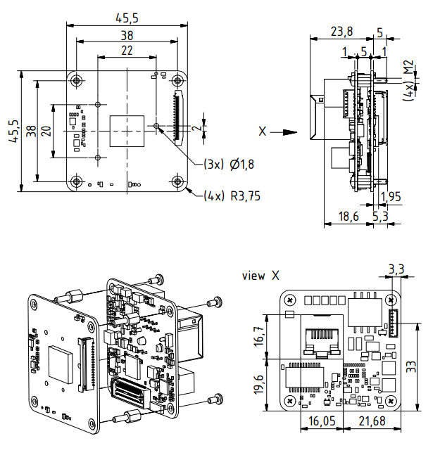 2.3MP 1/2.8" IMX236LLJ GigE Monochrome Board Camera